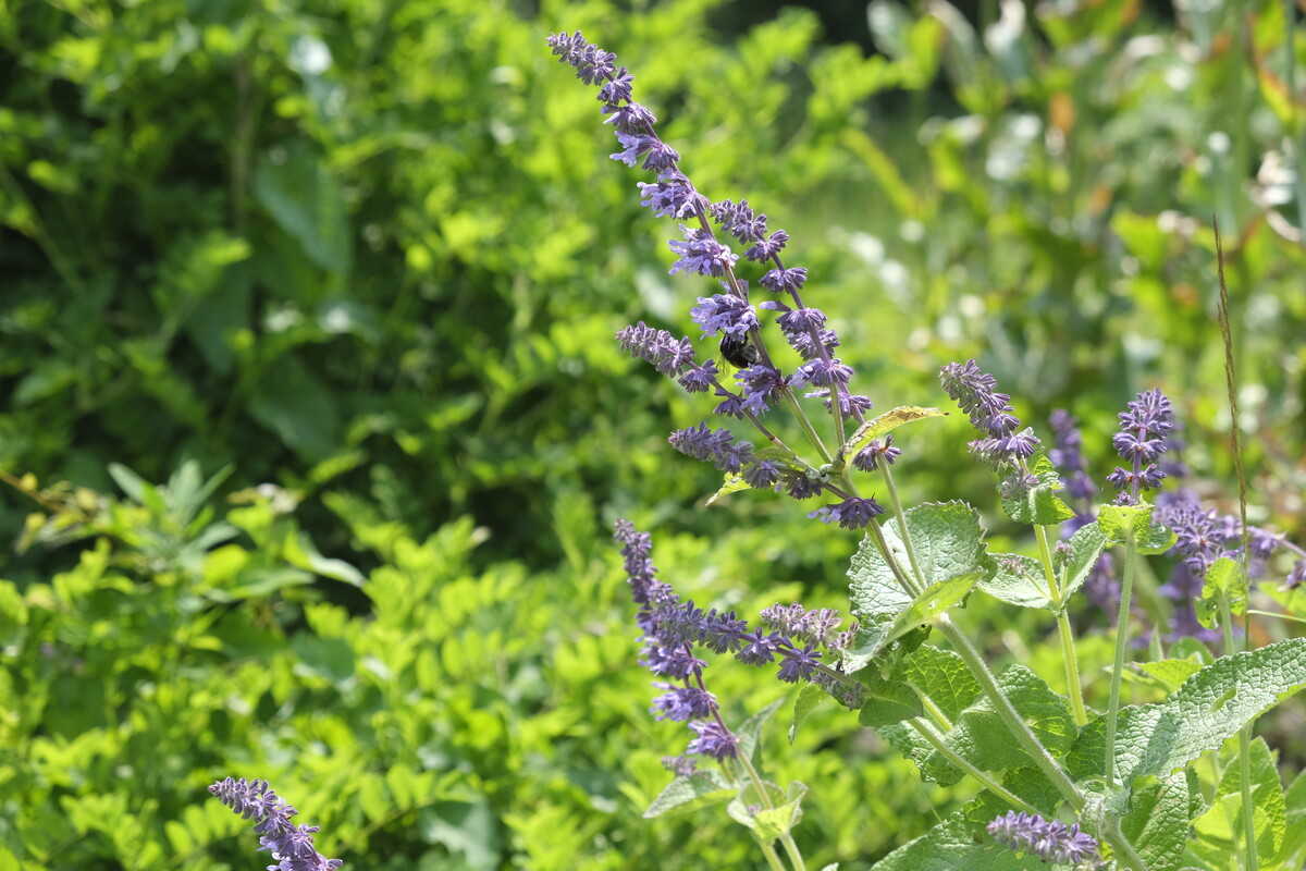 De bloeiaren behouden na de bloei nog lang een lichtpaarse kleur. Hommel-en bijenplant.
