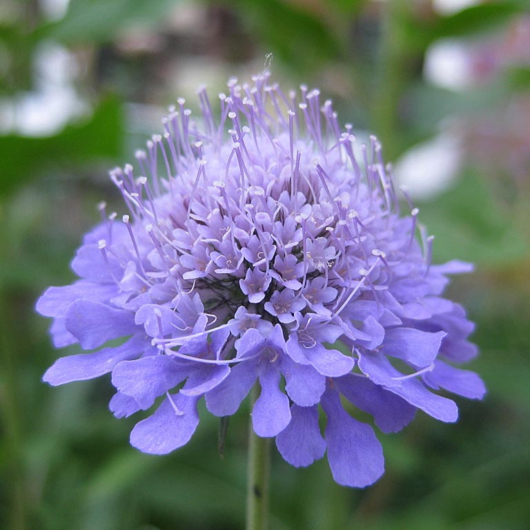 ‘Ik wil deze rubriek aftrappen met Duifkruid (Scabiosa columbaria). Een van mijn persoonlijke favorieten! De bloei is echt prachtig, met een licht paarse bloem die een zachte en wat tere uitstraling heeft. Maar dat is schijn; ze is een uitbundige en lange bloeier. In het wild spotten is lastig; deze plant is zeldzaam en beperkt zich tot droge, kalkrijke stukken grond in Zuid-Limburg en langs de oostgrens van Nederland. Helaas heeft ze het erg moeilijk in ons land. Dit is waarschijnlijk te wijten aan de verzuring van de bodem, wat ervoor zorgt dat onze kalkgraslanden verdwijnen.